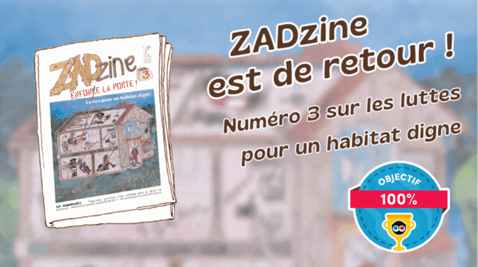 Ce numéro sera imprimé sur du papier journal, car nous avons cherché la forme la plus intéressante possible nous permettant de réduire les coûts de production. Ainsi, le prix de vente de ce numéro est plus accessible que les précédents. Dans Zadzine 3, vous retrouverez 32 grandes pages de contenu informatif, militant et artistique, pour vous donner envie de rejoindre la lutte pour le droit au logement et l’habitat digne !